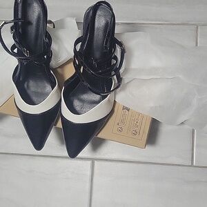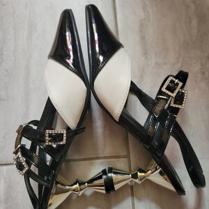Chic black heels with striking silver accents. A beautiful pair of shoes, perfect for any formal event. A must-have