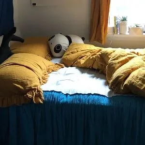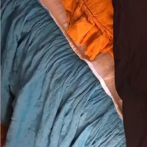 Kingdom of Comfort brand stonewashed Lithuanian linen in turquoise blue bed skirt (not cream). will be a great addition to any bed. Soft vintage shabby chic look.