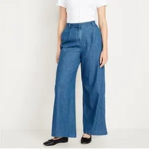 Old Navy high waisted trouser pants in a denim wash.