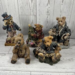 Set of 5 Boyds Bears & Friends from the Bearstone Collection with unique bear designs, detailed outfits, and textured vintage styling. Perfect collectible decor pieces, each adds retro whimsy and character to any space.