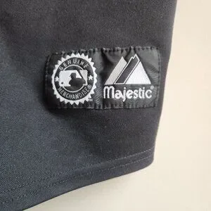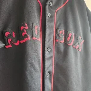 Excellent condition black Boston Red Sox jersey by Majestic. The size tag has washed away, but by the 24 inch pit to pit measurement, the MLB would consider this to be a 48 inch chest, or a large/x-large jersey.