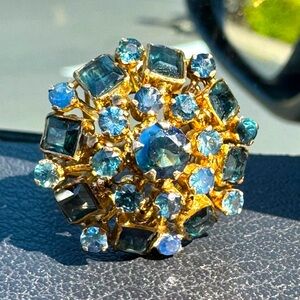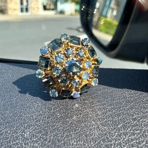 Ive never seen this style ring with bezel set emerald cut Blue Sapphires !