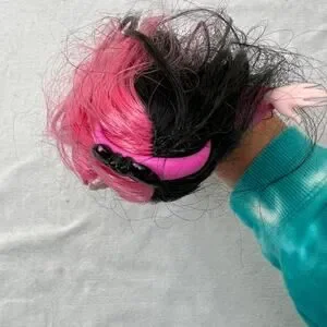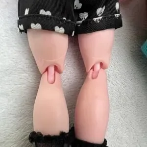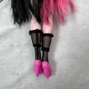 Condition: Hair is a little messy; minor discoloration on the back of her legs