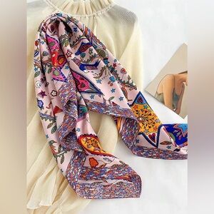 Boho Square Scarf – Pink Floral & Bird Print – Lightweight Chic Wrap – NWT