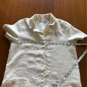Chic and versatile button-down shirt. Short sleeves and classic collar. 100% linen, excellent condition. Smoke free home; ships same or next day except Sundays and holidays.