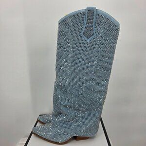AZALEA WANG Banian Knee High Rhinestone Denim Western Boot 7-11 NWT