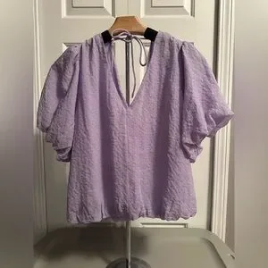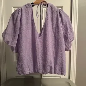 ASTR The Label Purple Textured V-Neck Puff Sleeve Top XL