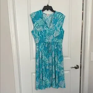 Jude Connally aqua blue and White Sleeveless Dress