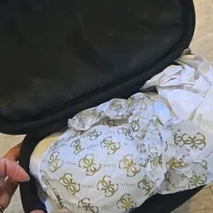 Stylish and elegant, this GUESS floral bag is perfect for any occasion. The black background with floral design adds a touch of sophistication. Ideal for women who love fashion and functionality. Great for travel. Measures approximately 10" x 5.5".