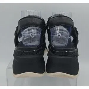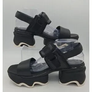 The Sorel Kinetic Impact Slingback Sandals in women's size 10 feature a platform block heel design, making them stylish and comfortable for casual occasions. The sandals have a mid-height block heel and a slingback style with a hook-and-loop closure for easy wear. Made with leather material and a rubber outsole, these sandals are perfect for summer, fall, and spring seasons. The solid black color adds a versatile touch to any outfit, making them a must-have for any woman's wardrobe.