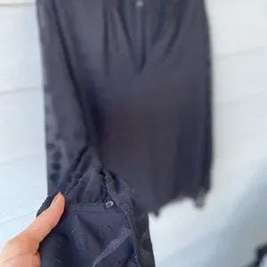 Elevate your wardrobe with this elegant black chiffon blouse. Perfect for any occasion, this top offers a sophisticated look with its subtle pattern and lightweight fabric.