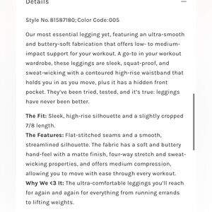 The Features: Flat-stitched seams and a smooth, streamlined silhouette. The fabric has a soft and buttery hand-feel with a matte finish, four-way stretch and sweat-wicking properties, and offers medium compression, allowing you to move with ease through every workout.