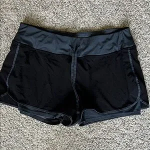 Comfortable Avia shorts for active wear. Sleek black with gray accents. Ideal for workouts.