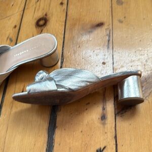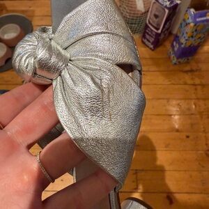 Chic metallic mules with a stylish knot design. Ideal for elevating any outfit.