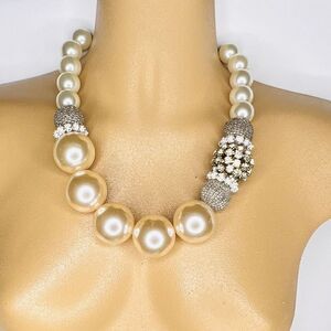 Vintage Lenora Dame Chunky Statement Pearl Runway Necklace Gold Plate Asymmetric