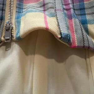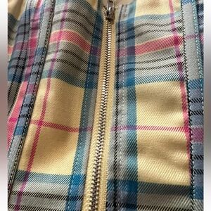 THIS IS A SET. Stylish plaid strapless top and skirt set. Features a mix of YELLOW & other colors. Lined. Trusted seller.