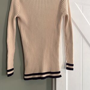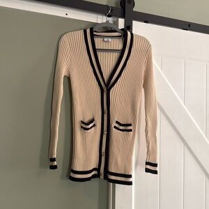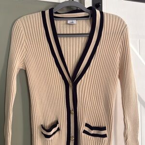 CAbi Navy Blue Cream Ribbed Radcliffe Cardigan Sweater - excellent condition!