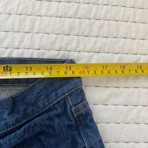 Stylish deep blue jeans by Taylor Stitch. Straight fit for a classic look. Ideal for everyday wear. These have a little distressing on the back bottom of the pant legs as noted in the photos.