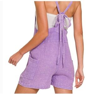 Stylish purple textured romper with pockets. Perfect for casual outings.