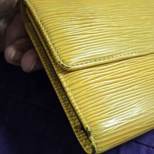 Beautiful yellow epi Louis Vuitton porte tresor trifold wallet. Ideal for a bold fashion statement. Please note: because this wallet is preloved it may have marks, creasing, scratches, rubbing, or other signs of use typical for used wallets.