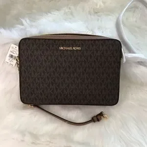 Michael Michael Kors Jet Set Large East West Crossbody, brown with gold tone hardware. New never used, Excellent condition with tags. Two interior slip pockets, measurements 9.5" W x 6.25" H x 2" D