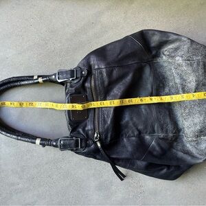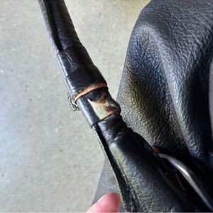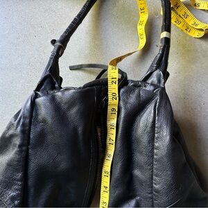 I have included measurements in the photographs. The bag is in excellent used condition. The leather sections on two straps need to be re-adhered to prevent damage, selling as is.