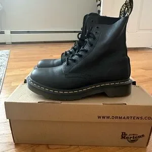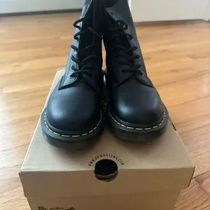Dr. Martens Pascal Black Boots with Yellow Stitching