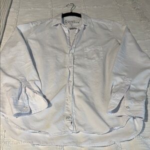 Timeless white button-down by Frank & Eileen. Ideal for casual wear. Soft fabric and relaxed fit. Light stain at bottom, see photo.
