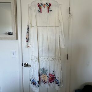 NWT FARM RIO Macaw Cross Stitch Embroidered Maxi Dress with Cutouts