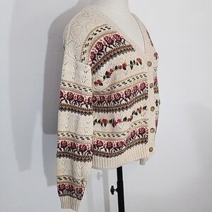 American Vintage by Best United Garment Co. Cardigan Floral Design Detail Long Sleeve Cream Red Green Gold Detail Size L