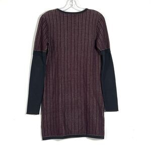 Derek Lam 10 Crosby Mini Sweater Dress Womens Sz M Wine Navy Stripe Long Sleeve