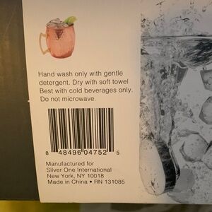 Set of four hammered finish Moscow Mule mugs. Elegant copper color with sturdy handles. Perfect for cocktails.