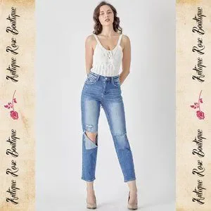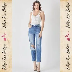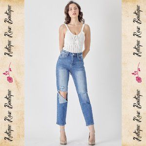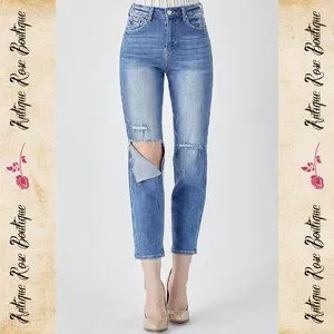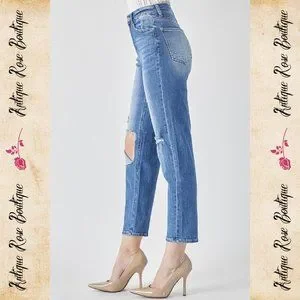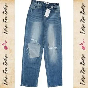 *NWT* Risen Relaxed Fit High Waist Jeans (Style: RDP5101)! If you LOVE heavily distressed jeans, these dark wash are perfect for you! Wear these for any occasion! Risen jeans do have stretch. Machine wash separately in cold water. Color may vary on your screen. Distressing can vary.