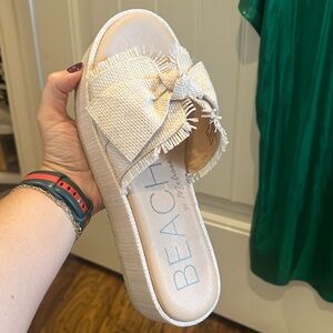 Elegant cream platform sandals by Matisse. Features a stylish bow accent. Perfect for casual outings. Only worn a few times. Runs slightly big and can fit 8.5.