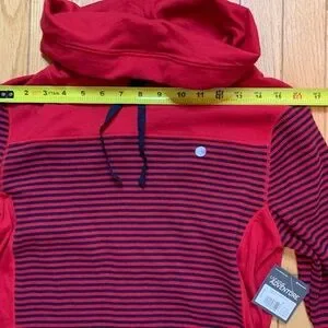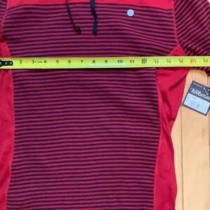 Red and black top size Med. Please look at photos for measurements. Non smoking home