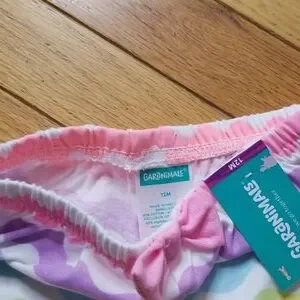 Brand new,18 m adorable pink with yellow happy flower face and black pants Ruffle on backside. Brand new 12 m orange onsie other colors yellow, pink plus shorts matching colors.