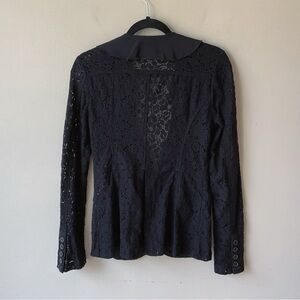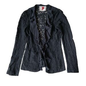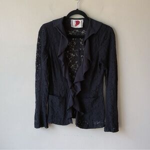 Free People Eyelet Lace Ruffle Front Black Blazer Size 6