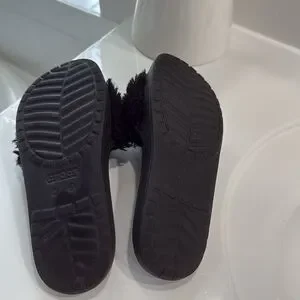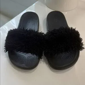 CROCS Black Fuzzy Slide Sandals