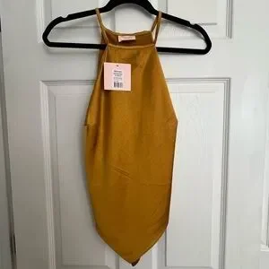 NWT Showpo high neck sleeveless satin top in yellow size 4