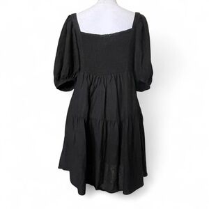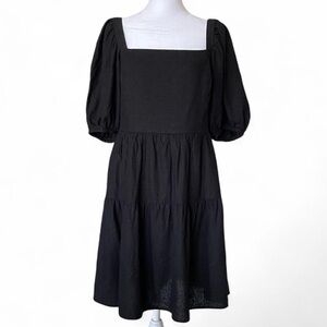 Wednesday Addams, puff sleeves, goth, minimalist, black, neutrals, statement sleeves, tiered dress, mini dress, fall, winter, spring, summer, whimsygoth, smocking, smocked, square neck, lightweight, basic, neutrals