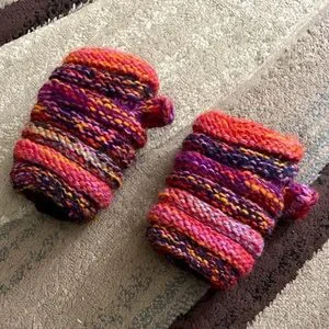 Add a splash of color to your winter accessories with these vibrant knit mittens. Perfect for keeping your hands warm and stylish.