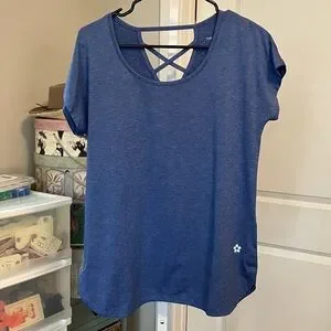 🎁Indigo short sleeve tee with crisscross back detail. Soft fabric for everyday comfort. Ideal for casual wear.