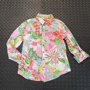 Good used condition Lilly Pulitzer Women’s Floral Button Down Shirt Pink, Green, and Orange