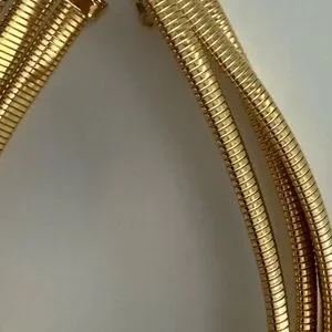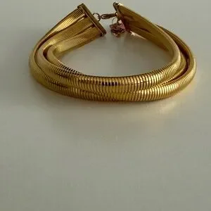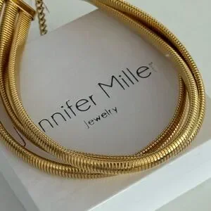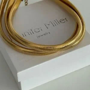 Jennifer Miller the contemporary purveyor of fine and fashion jewelry has built her name on quality fashion and fine jewelry for decades now . This triple strand gold plated snake chain choker is both simple and elegant ! Trending . Retired piece . Comes with gift box . Questions please ask π