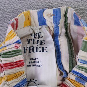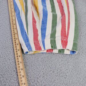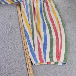 Vibrant wide leg pants with multicolor stripes. Comfortable and stylish. Perfect for casual wear.