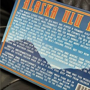 Experience the traditional cutlery of Alaska with this Ulu Knife. Featuring a sleek silver blade with Eagle and a sturdy wooden handle, this knife is perfect for slicing fruits, vegetables, meat, and more. Enhance your kitchen with this essential tool. New in box.