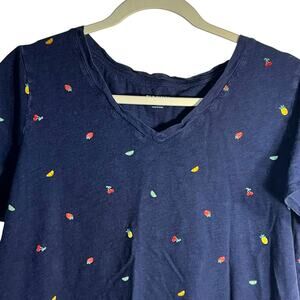 Old Navy EveryWear Slub Knit V-Neck Fruit Print T-Shirt Navy Large