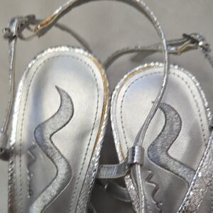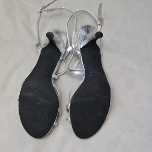 Stylish silver heels with elegant straps. Perfect for any occasion.