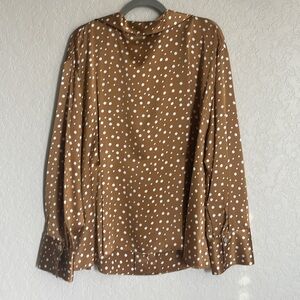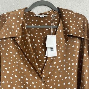 NWT Vince Tossed Dot Button-front Silk Blouse In Brown