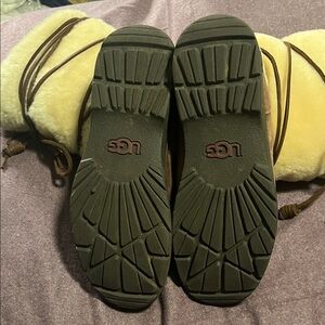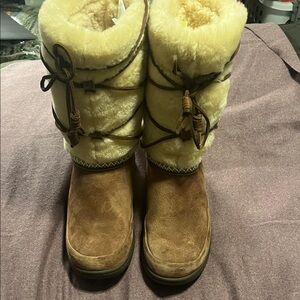 Stylish, warm and very comfortable! Barely worn and great condition. Ugg Maxie Boots with amazing suede/wool high top! Boots have hard bottom perfect for snow/rainy weather Size 10. No wear on tread. Perfect for winter!